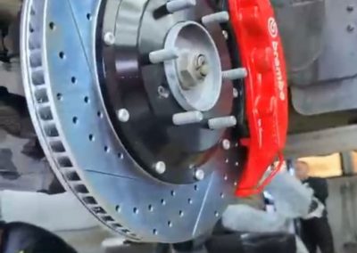 Тормозную систему установил в круг, перед 6 поршневую Brembo V6 380 mm, зад Brembo F40 380mm с электроприводом для электроручника. Прошла неделя, клиент доволен и мы рады, что смогли помочь решить проблему фактически отсутствия тормозов на авто.