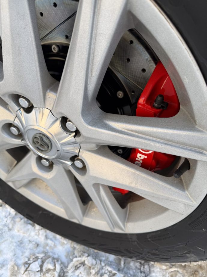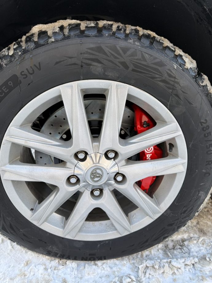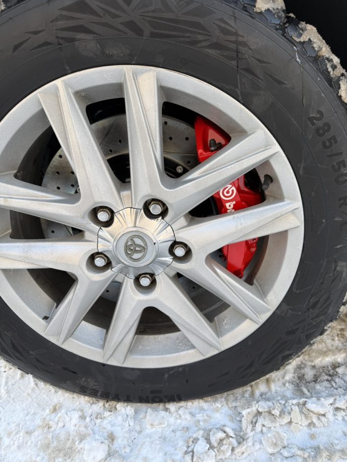Установка усиленного тормозного комплекта Brembo GT6 с диаметром диска 405мм перед, на Toyota Land Cruiser 200, фото было предоставлено клиентом.