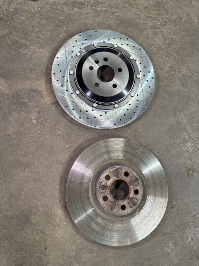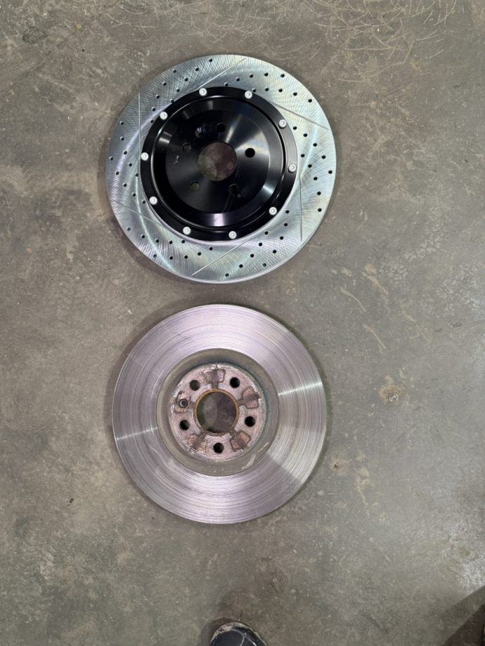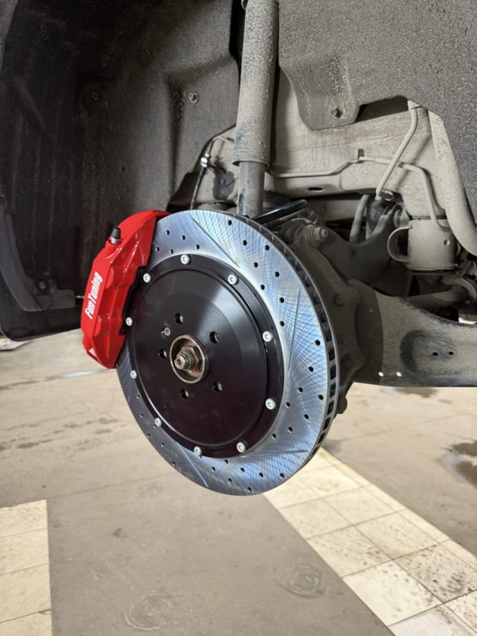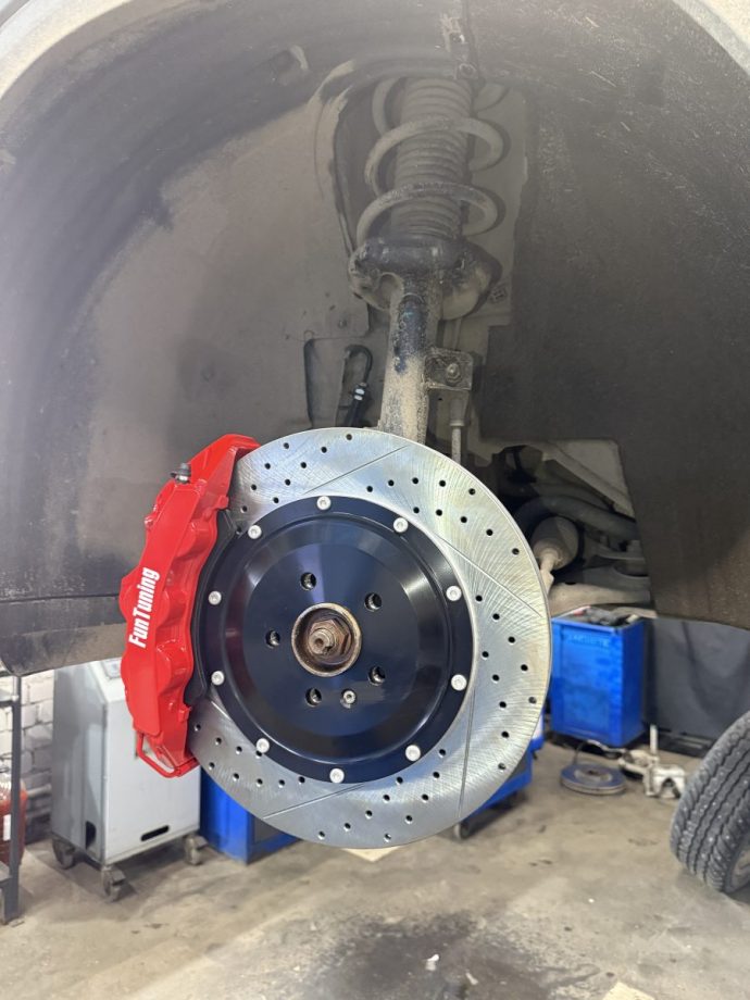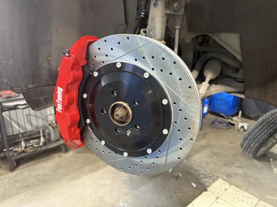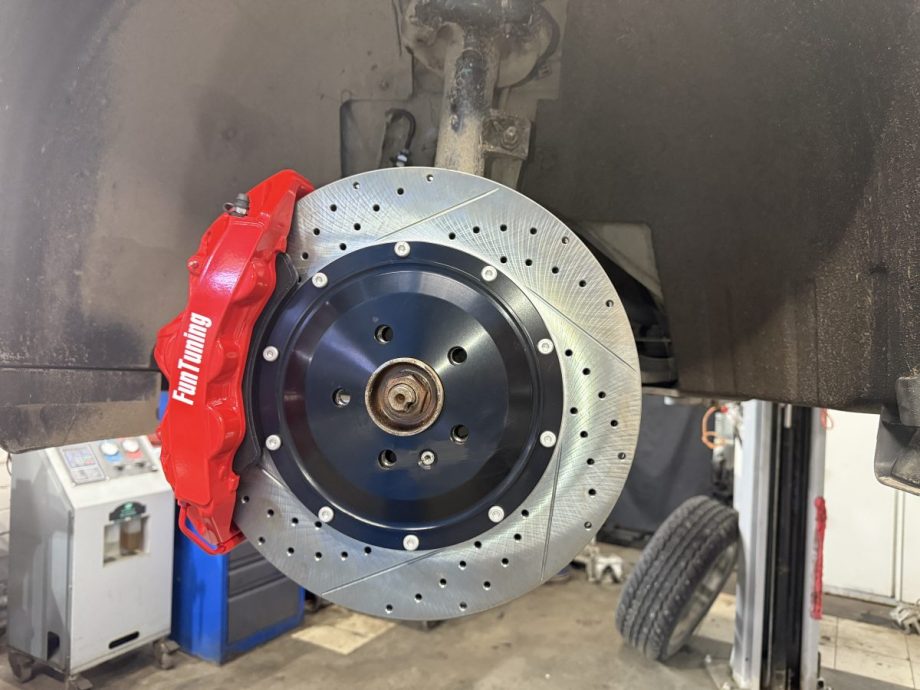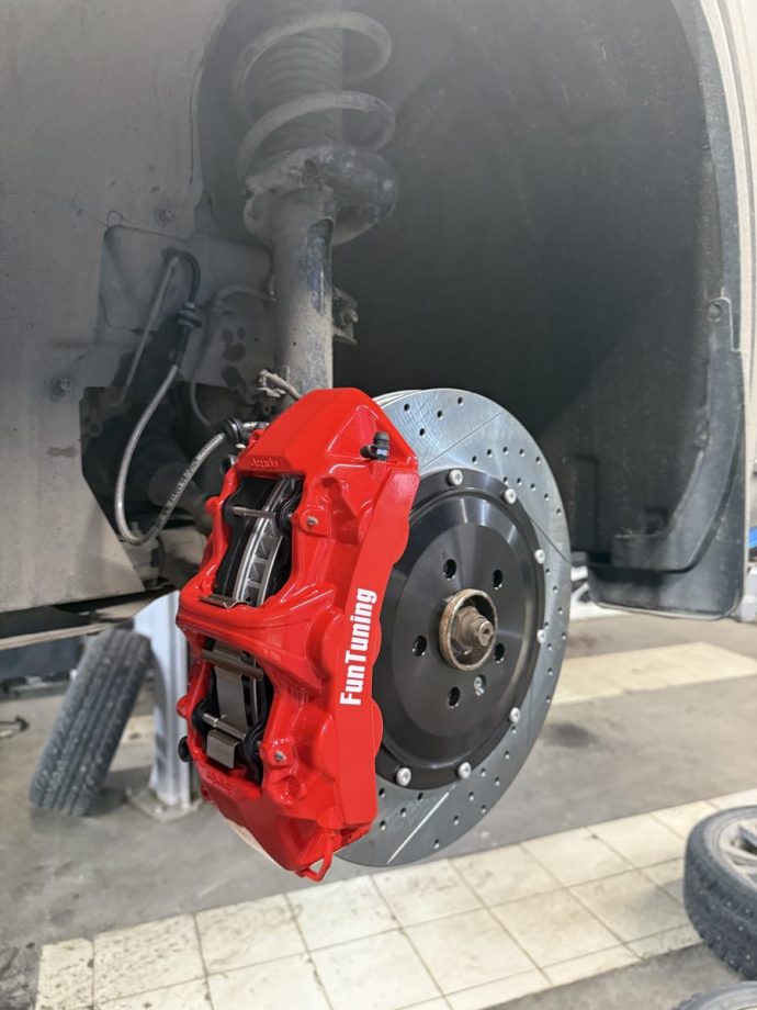 Передняя ось — 6 поршневая система с диаметром диска 380 мм, диски перфорированные с насечками.