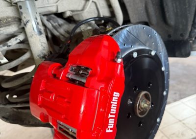 Установили в день заказа, нужна была оперативность, клиент был в Казани проездом, повело диски штатные, было биение в руль. Как сказал клиент диски менял совсем недавно, машина толком не оттормаживалась. Решили проблему — установили диски усиленные вентилируемые, все для максимального охлаждения, суппорта поставили так же высокопроизводительные, теперь можно ездить спокойно не переживая о том что в самый ответственный момент машина не оттормозиться.