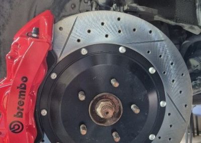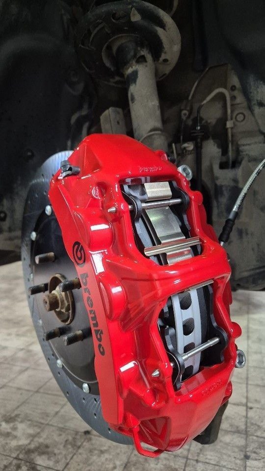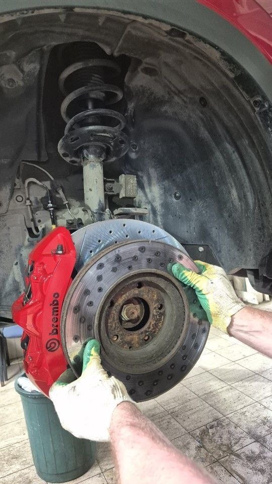 Клиент обратился с проблемой биения в руль, подобрали, основная нагрузка всегда на переднюю ось, поэтому поставили усиленную системы, чтобы наверняка избежать перегрева и возникновения биения. Тормозной путь тоже сократился, суппорта мощнее и производительнее штатных. Всегда рады помочь