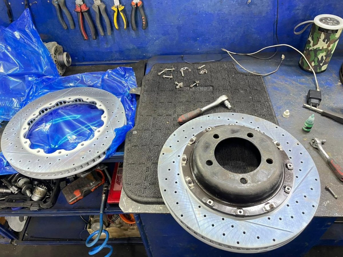 Замена полотна изношенного диска 405мм, так же замена колодок тормозной системы Brembo GT6